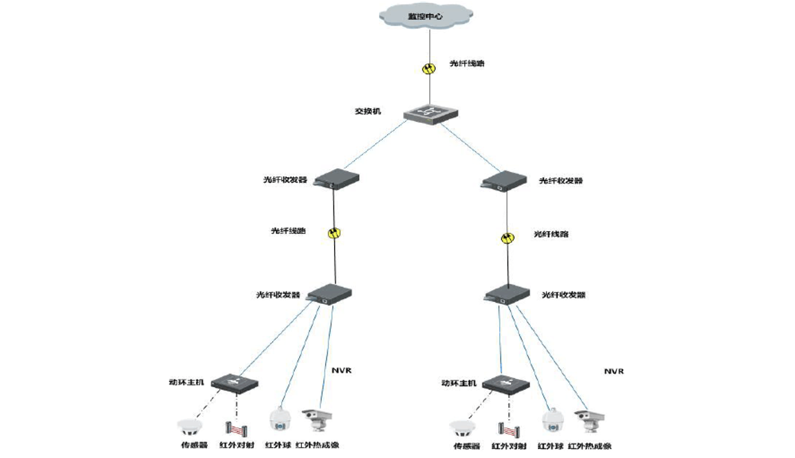 傳輸網(wǎng)絡(luò)可采用光纖傳輸網(wǎng)絡(luò),可將攝像機(jī)、鏡頭拍攝的現(xiàn)場(chǎng)圖像實(shí)時(shí)傳輸?shù)街笓]中心。