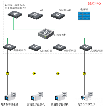 本方案設計可分為前端業務系統、監控指揮中心、傳輸網絡幾個模塊,其中在前端業務系統中包括視頻監控、人員管理、報警管理,利用原有的交換傳輸接入到現有的應用平臺等幾大系統。