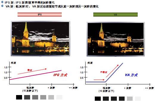 低灰顯示效果,出現色塊和亮度死區 高灰顯示效果,色彩豐富過渡自然