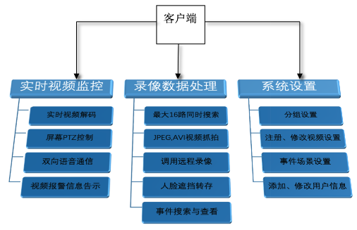 在視頻監控方面出于安全性的考慮十分注重底層編解碼,尤其在大型視頻監控平臺應用的穩定性首先基于系統核心架構。因此,將網絡視頻管理平臺的開發重點從底層核心層面到應用層面,都做出了嚴密架構。同時,這也是目前大多數平臺廠商開發的重要方向,即從原先只是管理視頻,發展為能夠即時掌握信息、且可進行事前預防的更高階的安防系統。