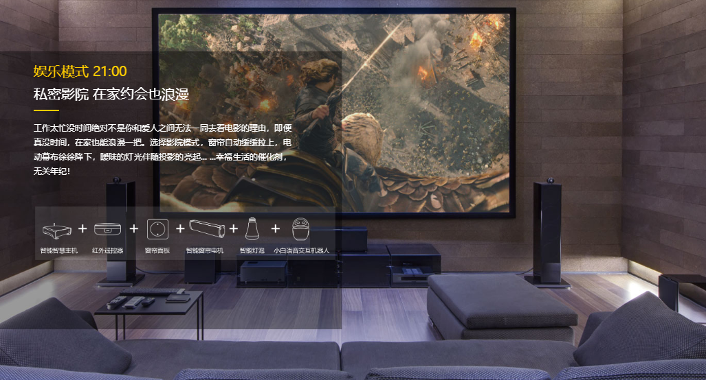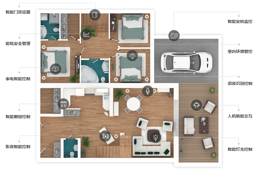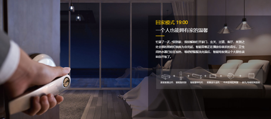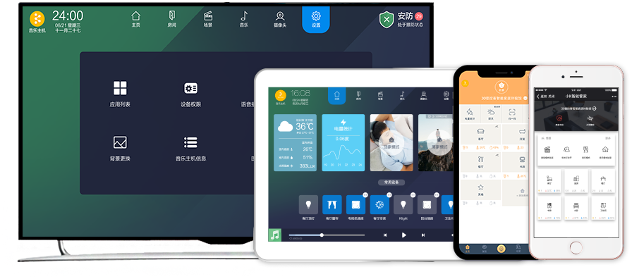 智能家居通過無線技術將家中電器設備聯網,從而實現各種全屋智能場景。讓你或者家人通過簡單的一個動作或者一句話即可自動操作家中不同設備。遠離家中繁瑣,科技解放生活。更便捷、簡單、安全、聰明的智能家居,智能生態系統設計的智能交互型應用平臺,擁有手機APP、手機微信、平板PAD、電視TV四大控制方式。