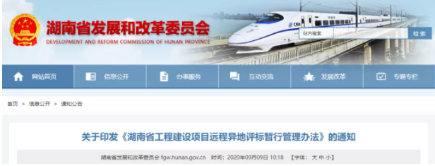 9月9日,湖南省發(fā)改委、省住建廳、省交通運輸廳、省水利廳和省公共資源交易中心等5部門聯(lián)合發(fā)布《湖南省工程建設(shè)項目遠(yuǎn)程異地評標(biāo)暫行管理辦法》。